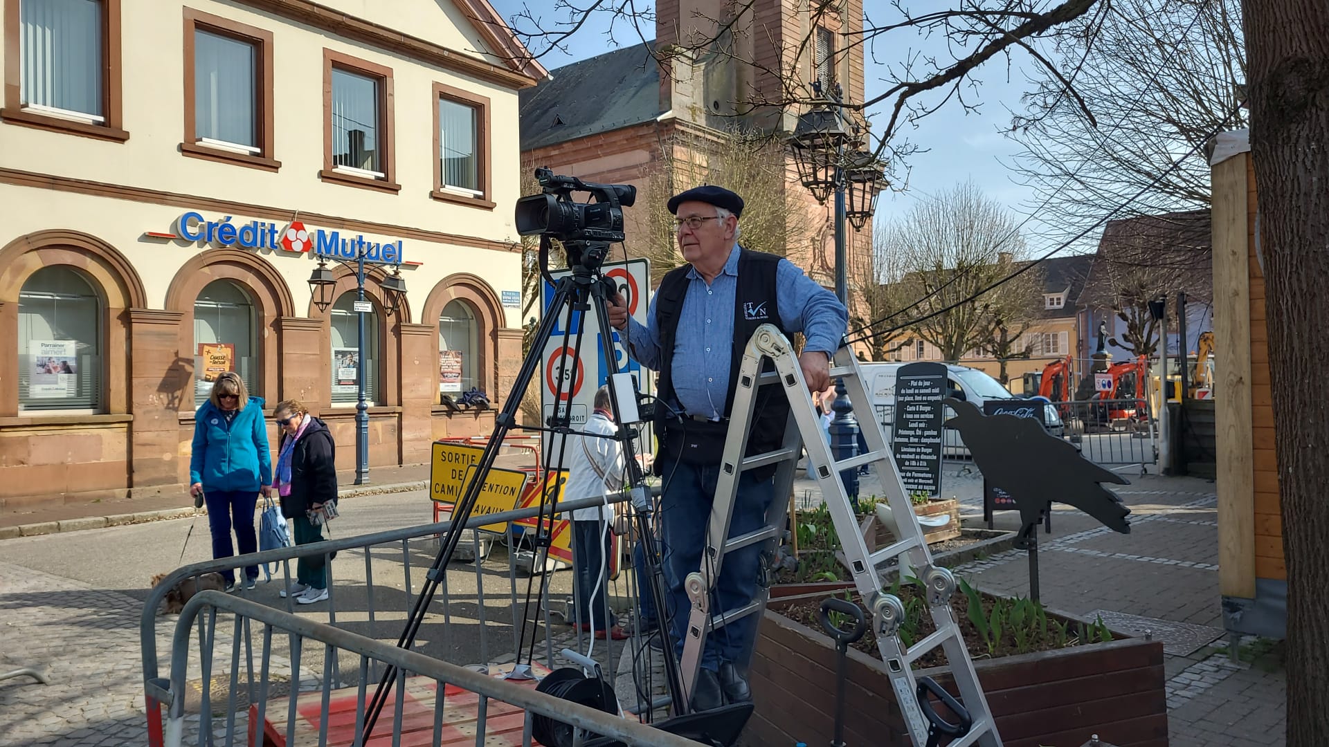 Niederbronn – Tournage et projection sur écran géant, place du Bureau Central, à l’occasion de la fête de la musique avec Louis Bertignac