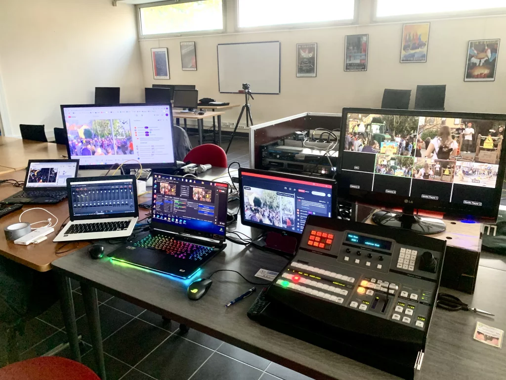 Diffusion en direct sur Youtube avec 3 caméras, dont une caméra mobile HF, positionnées sur le parcours de la cavalcade